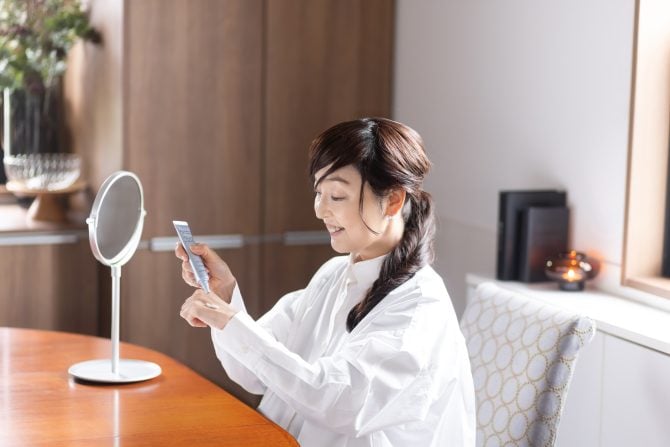 「長年使い続けているおかげか、普段は不調をほとんど感じたことがありません。ドモホルンリンクルがどんどん進化してくれるから、私は信頼して使うだけ。年齢を重ねても気にせずにいられることが、その進化の証だと思えて、今後も使い続けたくなるんです」