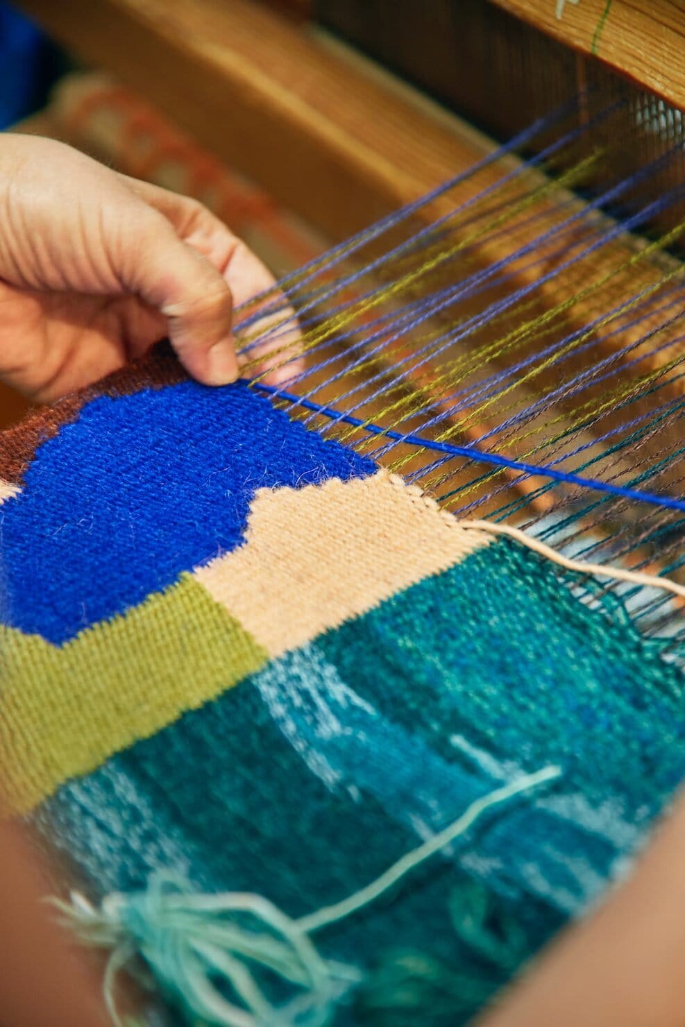 北欧の基礎学校(小中一貫校)には、伝統的手工芸について学ぶ「スロイド」という授業があり、実際に大きな機織り機で織物づくりを行うことも。