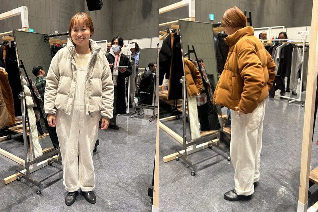 新作ダウンジャケットのうち圷さんが気になったのは、見た目にもほっこりとあたたかいコーデュロイ素材のダウンジャケット。