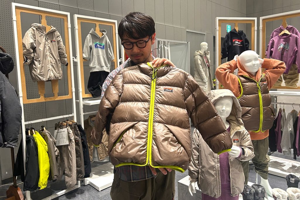 雪山などの過酷な環境でも使える高い機能性を備えたアイテムをはじめ、雪中キャンプや雪国でも安心して使えるアイテム、タウンユースできるカジュアルなアイテムまで……。たくさんのダウンジャケットがずらりと並ぶ様子は圧巻でした!