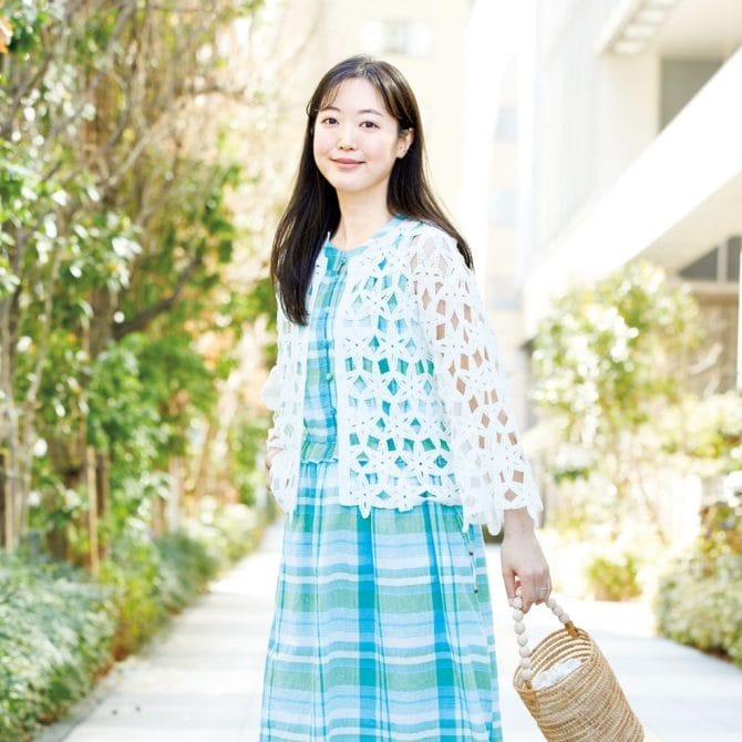 :【おしゃれさんの着まわし4コーデ】チェックワンピースとクロシェ編みカーデの清涼スタイル:シップス エニィ プレス・半田 麗さん