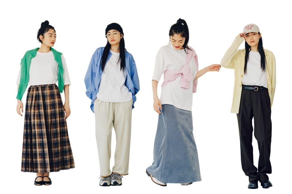 白Tは「カーデ」or「シャツ」を羽織って、ボトムスで季節感を出す