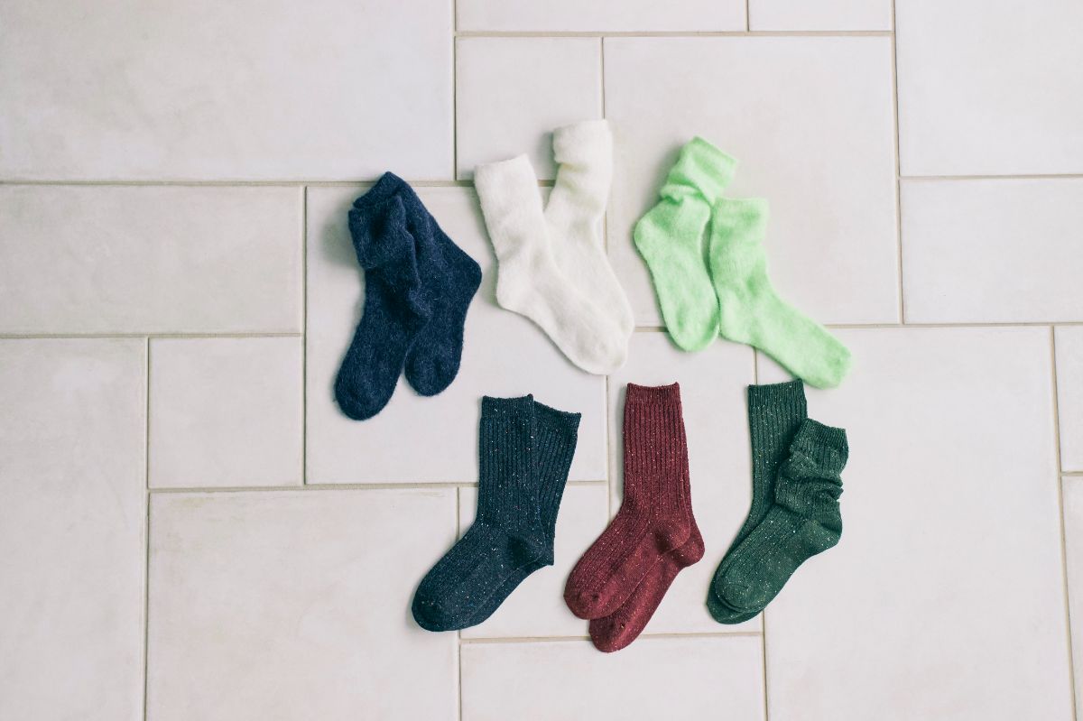 「きれいな色やぬくもりのあるふわふわモヘア、ナチュラルな着こなしに映えるこっくりした色など、冬のコーディネートのスパイスになるものをセレクトしています。靴との相性がとてもよくて、足にも気持ちよくフィットします」