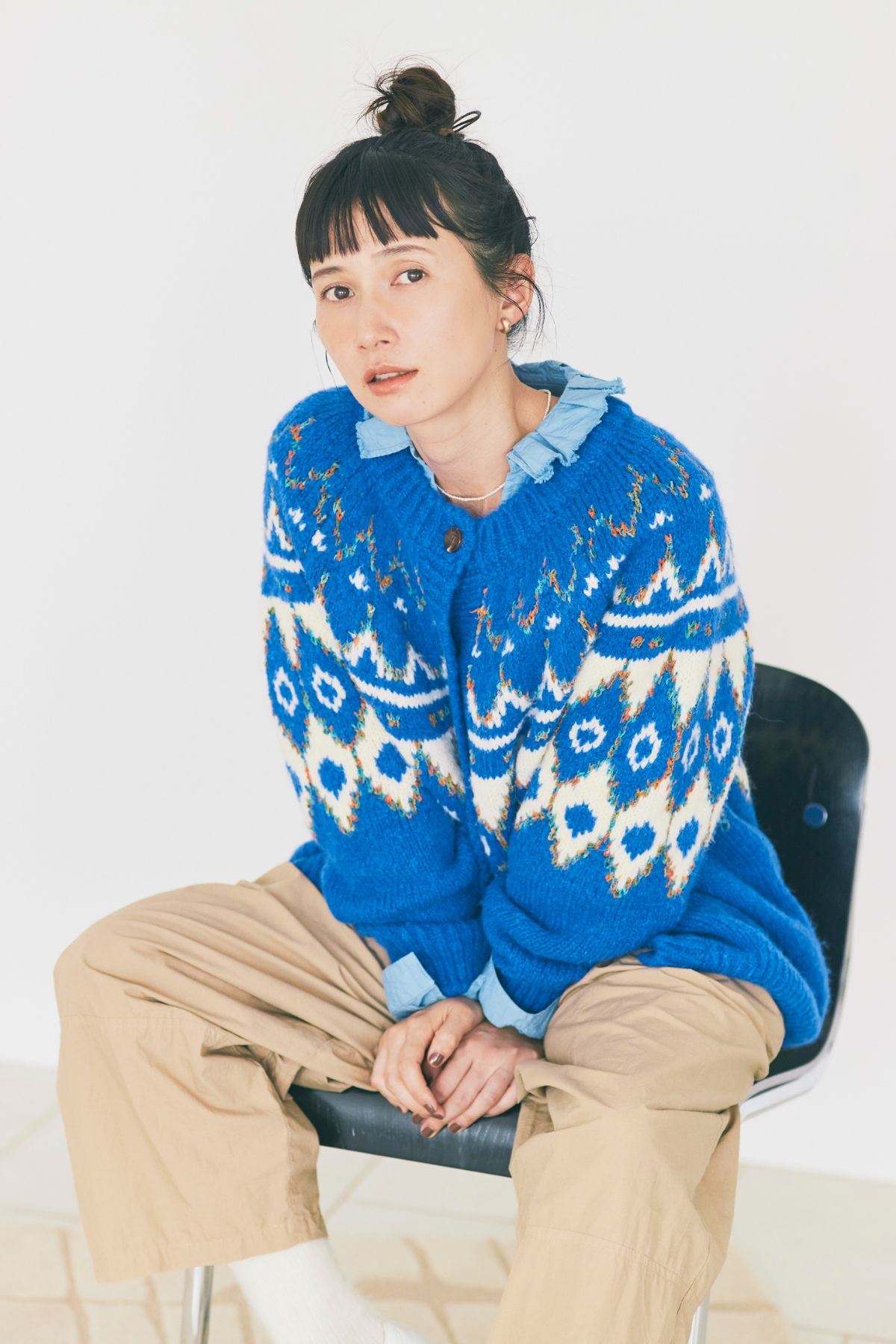 「このニットは日本限定色ですが、韓国で色違いのものを買いました。カラフルなのに大人が上品に着られる唯一無二のデザインだと思います。この機会に手に取ってもらえたらうれしいです」