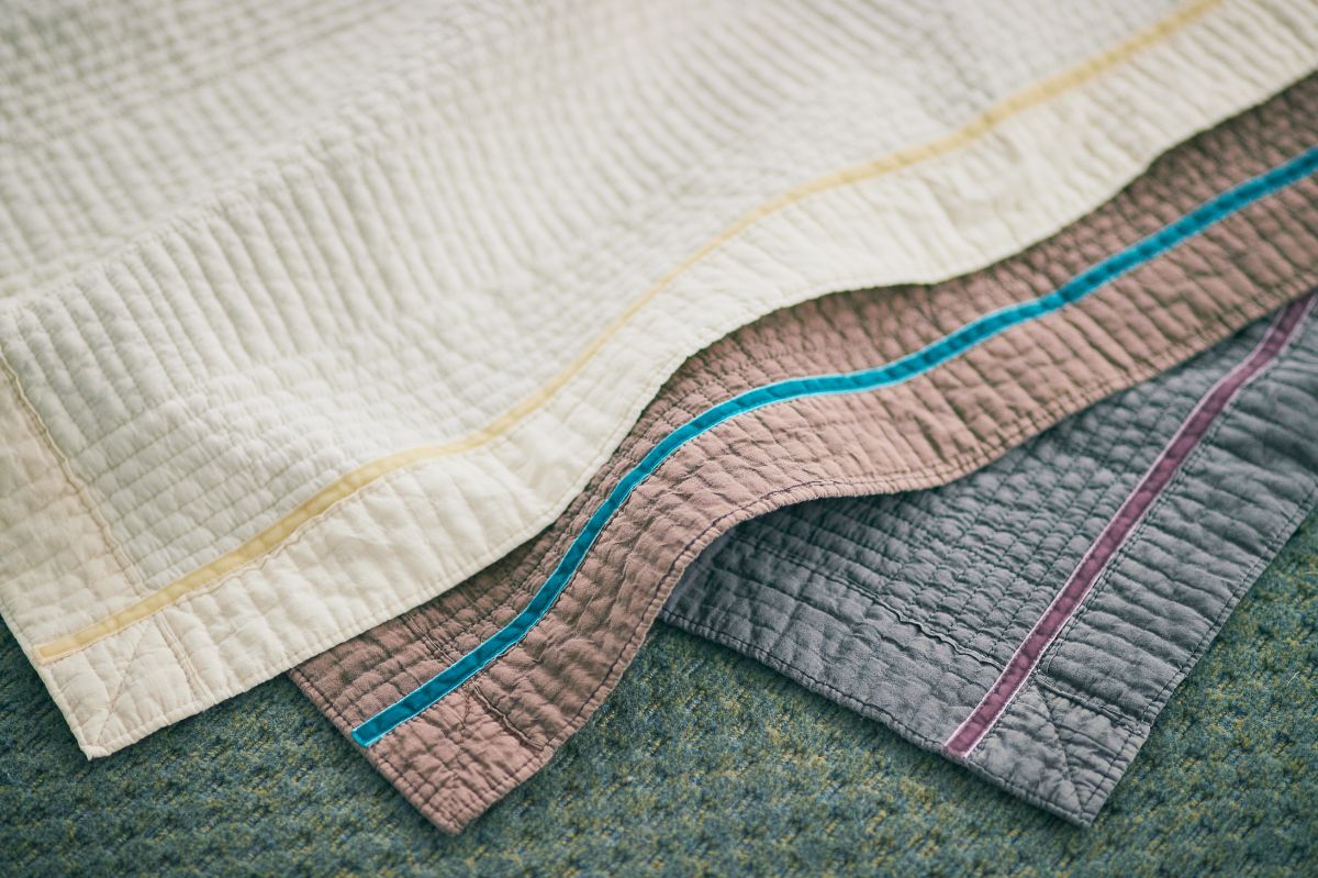「イブルは軽くて丈夫で、お洗濯してもすぐに乾くのが最高! 本場では甘めの色やデザインが多いので、ナチュラルな人が使いやすいものを作れたらいいなと思って。私が欲しい3色を選んで、ベロアリボンをポイントにしました」