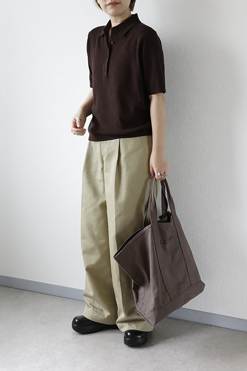 ワイドパンツはベージュ、ブラック、ダークグレイの3色。