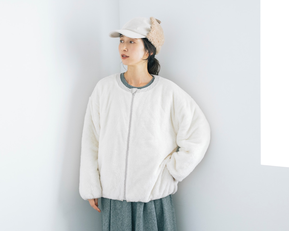 内側のボアはふわふわでやわらか。リバーシブル仕様で、その日の気分に合わせて表情を変えられるのもうれしいポイント。