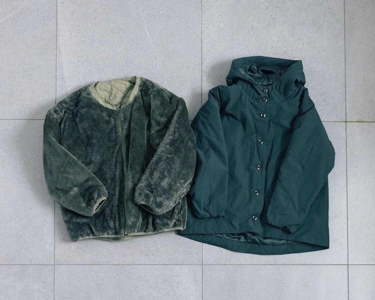 右:フードジャケット¥5,489、左:キルトリバーシブルジャケット¥5,489/ともにツクル&リン(シャンブル)