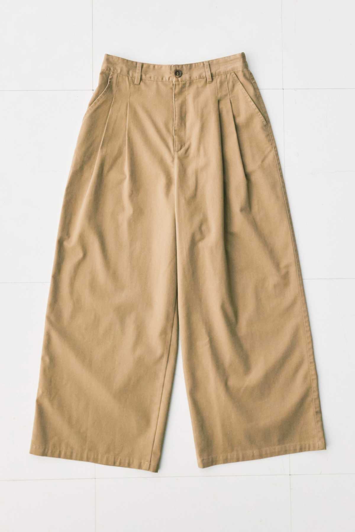 ウエストのタックが縦ラインを強調して、広がりすぎずに品よくはけるシルエットに。はき心地がよくてスタイルアップも狙える一本。