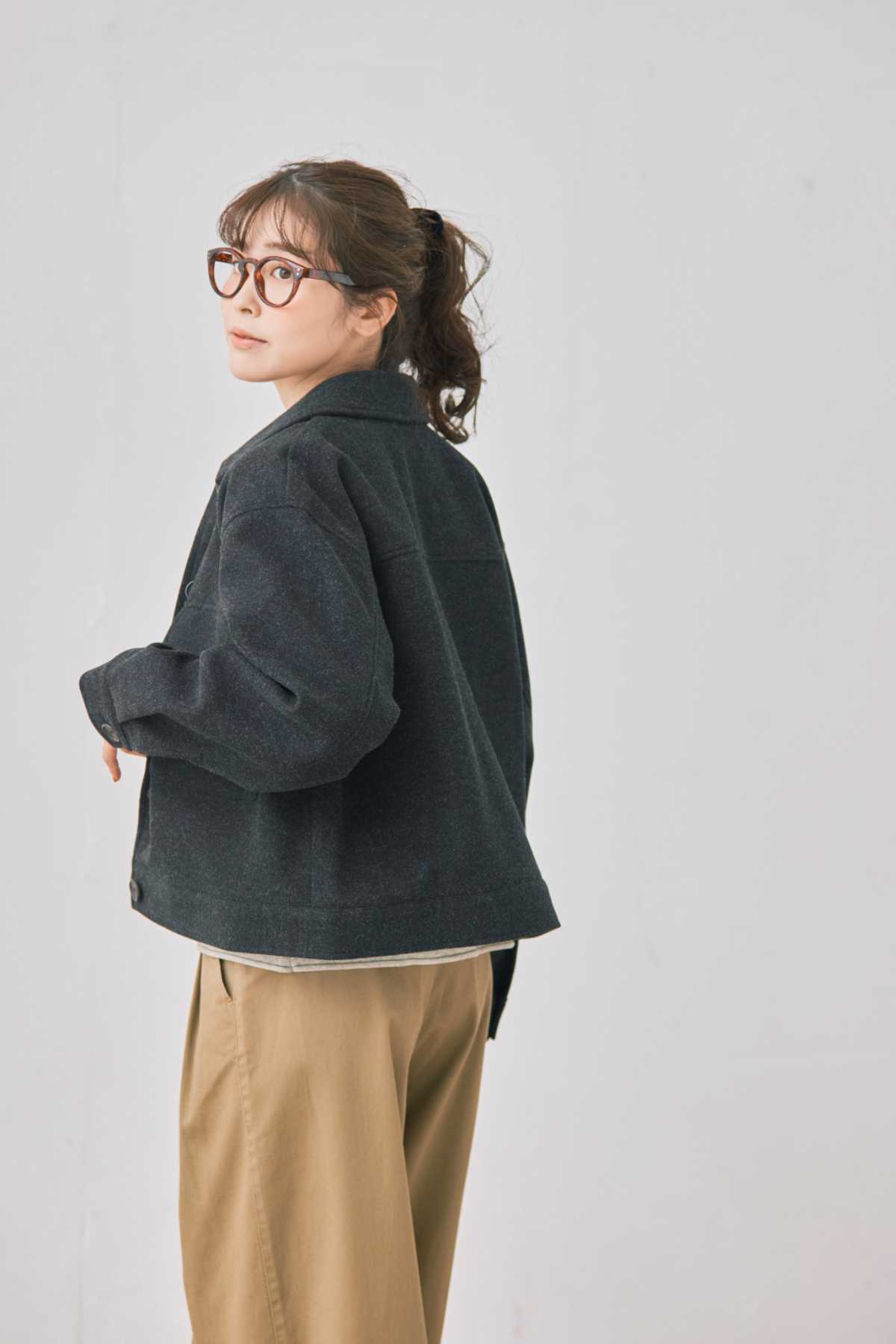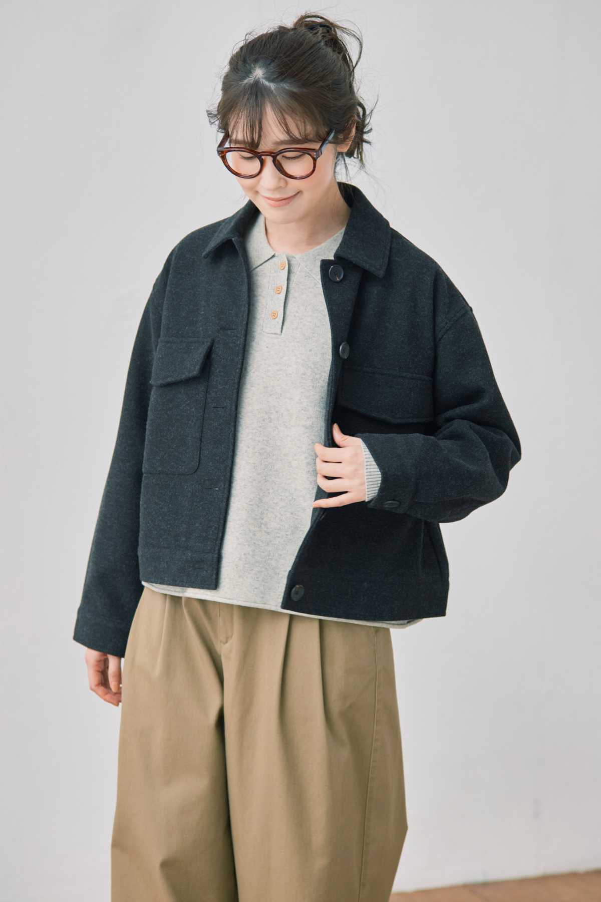 フェルト状に編み立てたぬくもりのある素材を採用。旬のクロップト丈でバランスよく着こなせます。