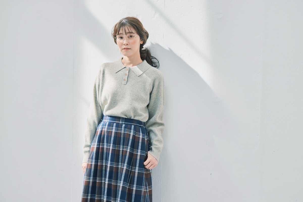 「シンプルでニットにもジャケットにも合います。肩がドロップしたシルエットにして、ゆったりとナチュラルに仕上げました」