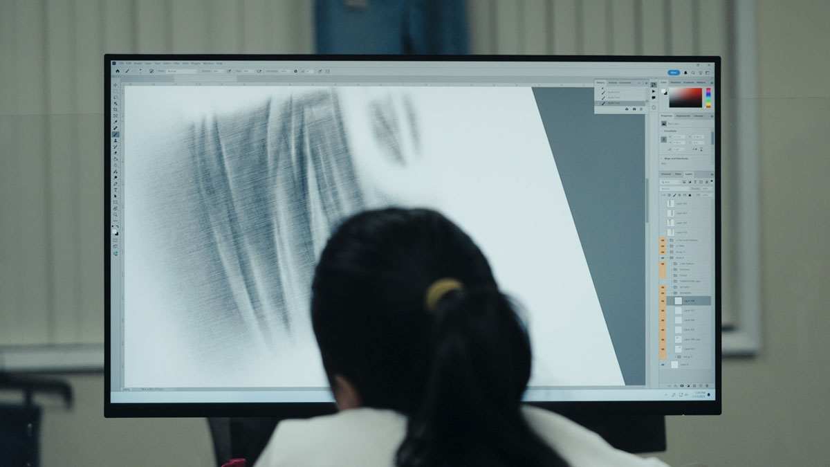 ファッションのトレンド情報がいち早く集まるこの地で、シルエットや加工、生地の研究やテスト、フィッティングなどを入念に行なっています。