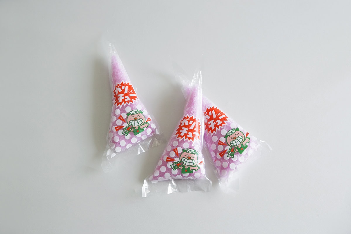 天草で50年以上愛され続ける、昭和レトロな三角袋に入ったほどよい甘味のかき氷。