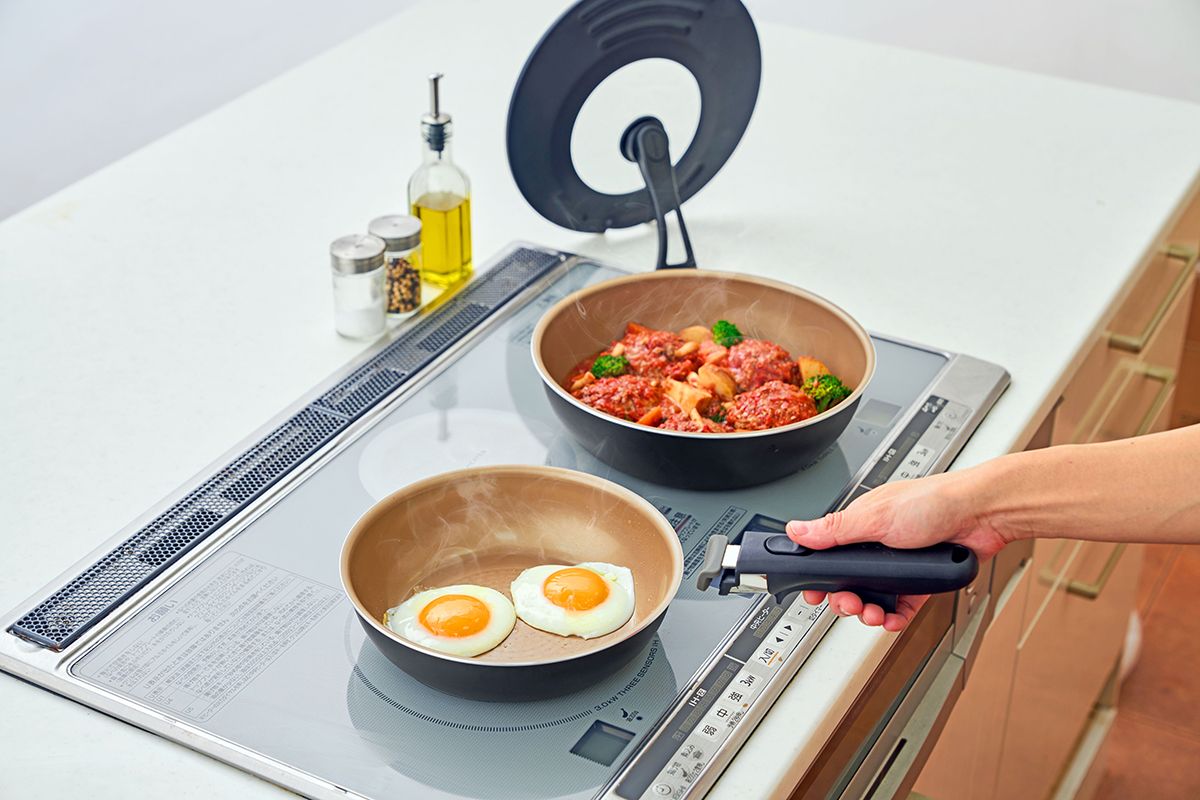 フライパンと取っ手は丸洗いできて食洗機にも対応。
