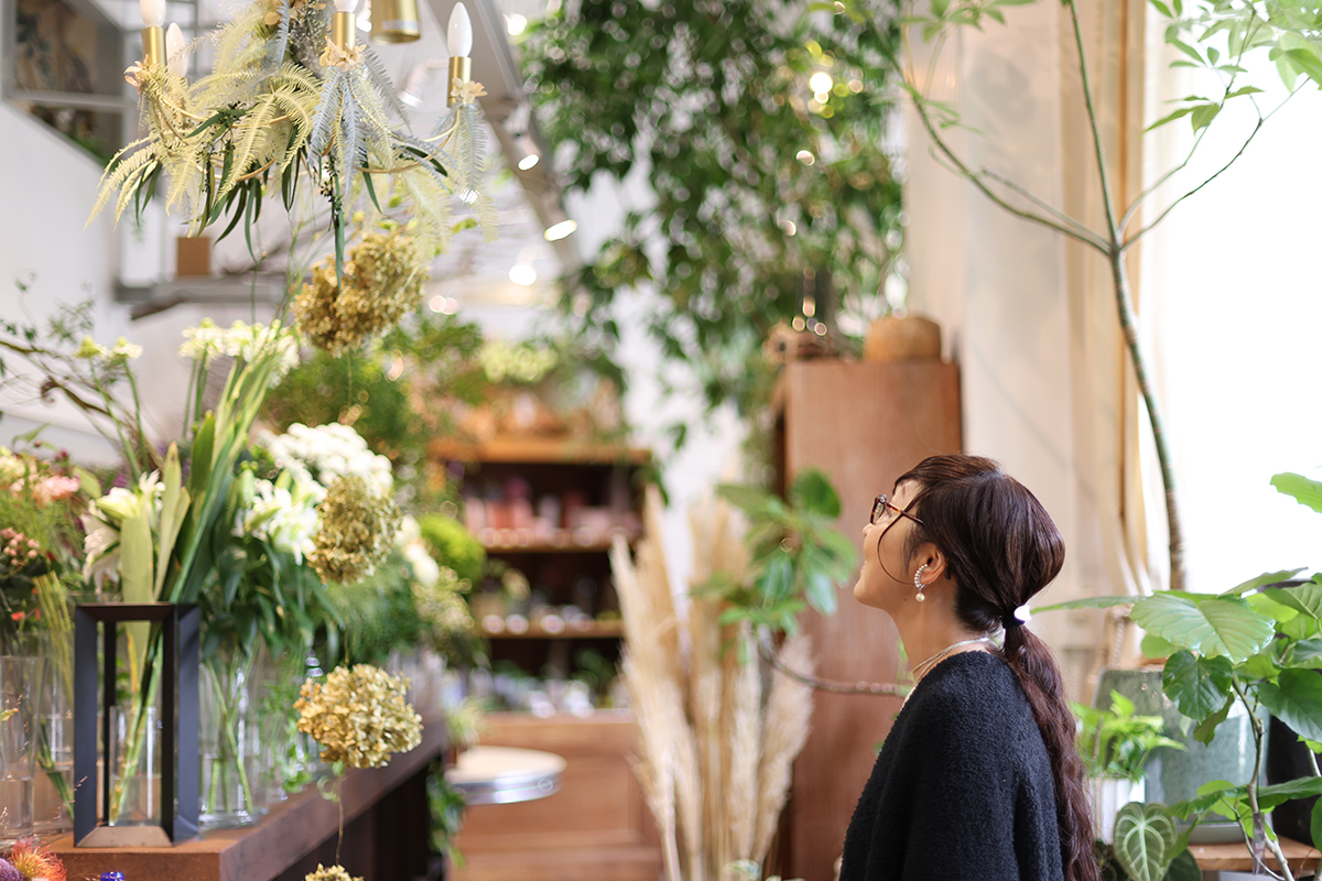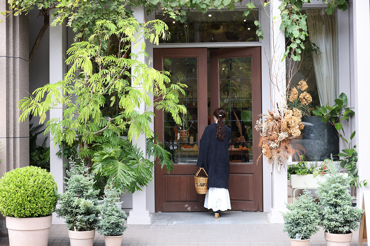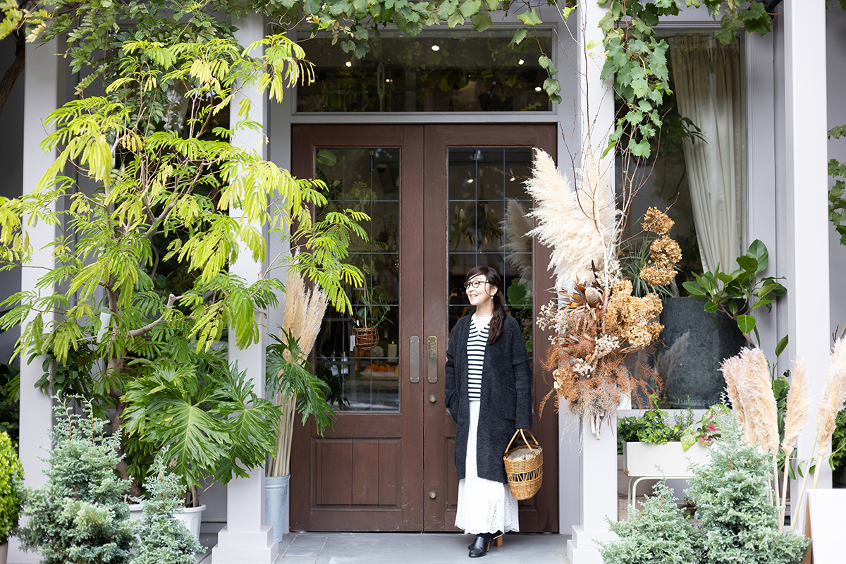 佇まいも素敵な「ユカ デザインフローラル」。いつもここへ伺うと色とりどりの草花が並んでいて珍しい花も多く、スタッフの方の優しい笑顔も素敵で、お人柄と草花に癒やされるのか、とてもリラックスした心持ちになります。
