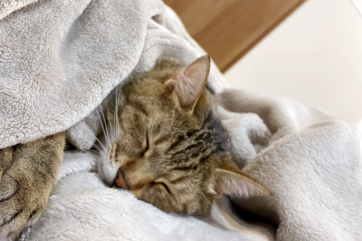 急に寒くなったせいか、私の毛布に潜り込んでくるようになったそら。猫とはいえ重いので私は身動き取れなくて朝起きると体がバキバキになっています。