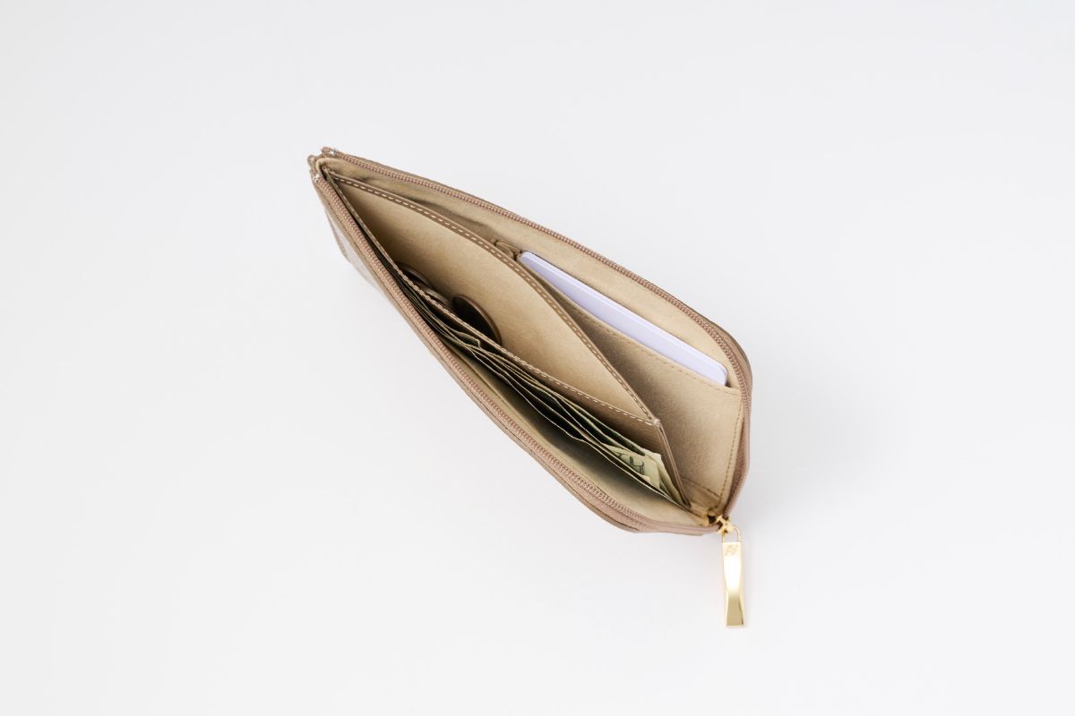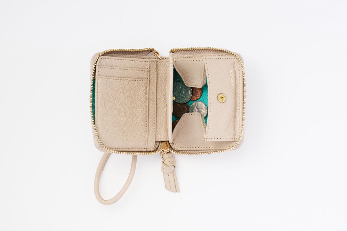 中右:すっきりとしたミニマルなデザインが2026年の運気と好相性。ベージュで「火」を吸収して金運にシフト。外にカード入れがあり、必要なときにさっと取り出せます。