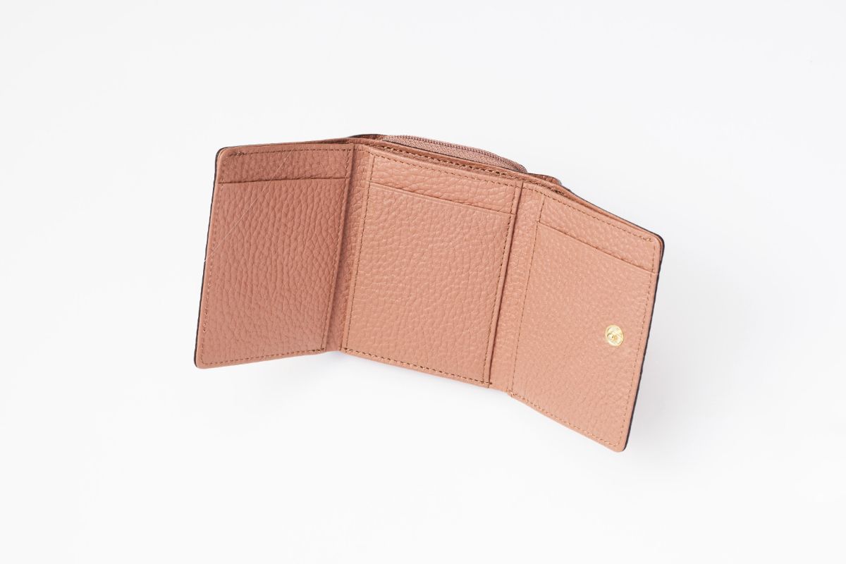 2026年の開運財布選びのポイント③「火」を安定へと導く、アースカラー上:長財布¥ 29,700/ゲンテン(クイーポ) 中:二つ折り財布¥10,890/ペルケ(アンビリオン) 下:三つ折り財布¥12,100/タイドウェイ(タイドウェイ原宿店)