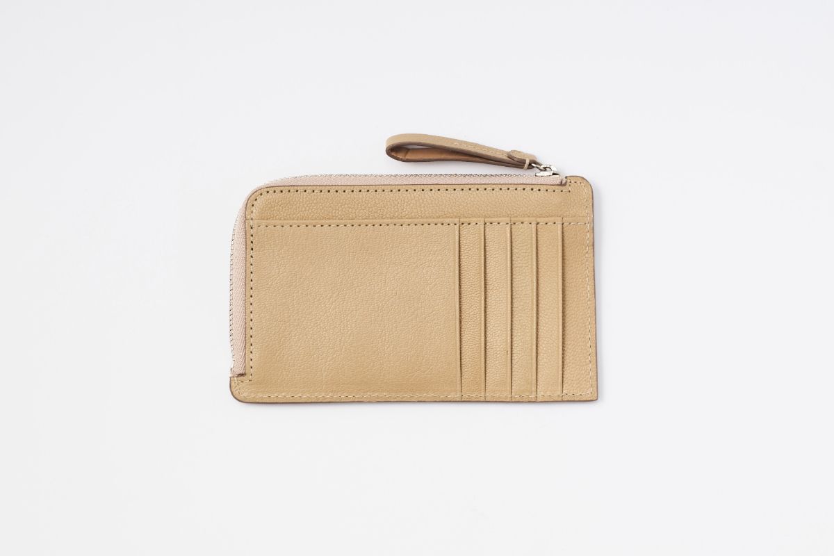 中:約1mmの薄さながら、お札を折らずに入れられて6~8枚収納できるカード入れがあるため整理整頓しやすい。ベージュで火の力を落ち着かせて金運に変換。