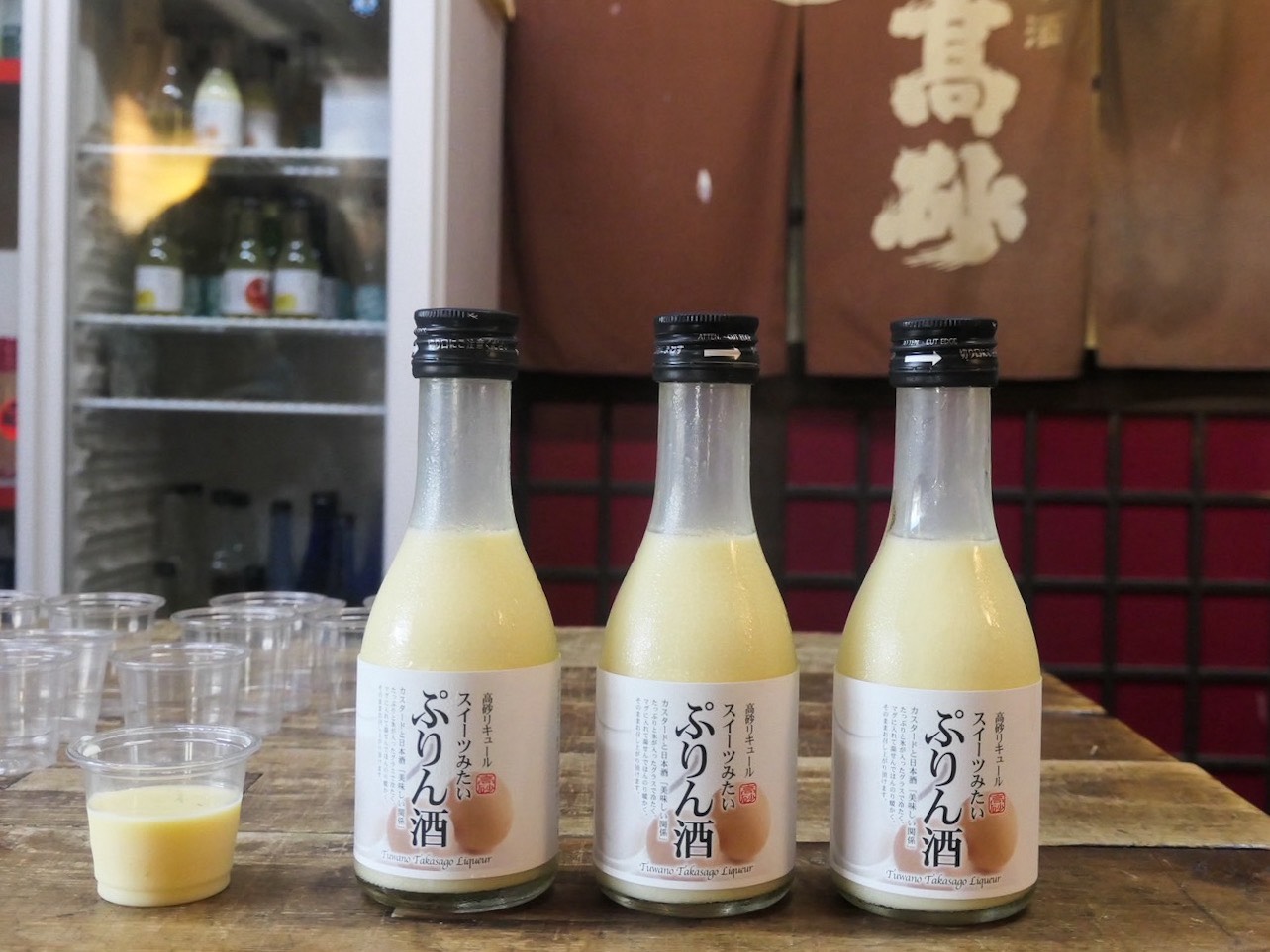 日本酒だけでなく、地元の特産を利用した焼酎やリキュールも販売しています。お酒が苦手な人にはやわらかな甘みのぷりん酒がおすすめ。冷やして飲むとジュースみたいで美味しい!