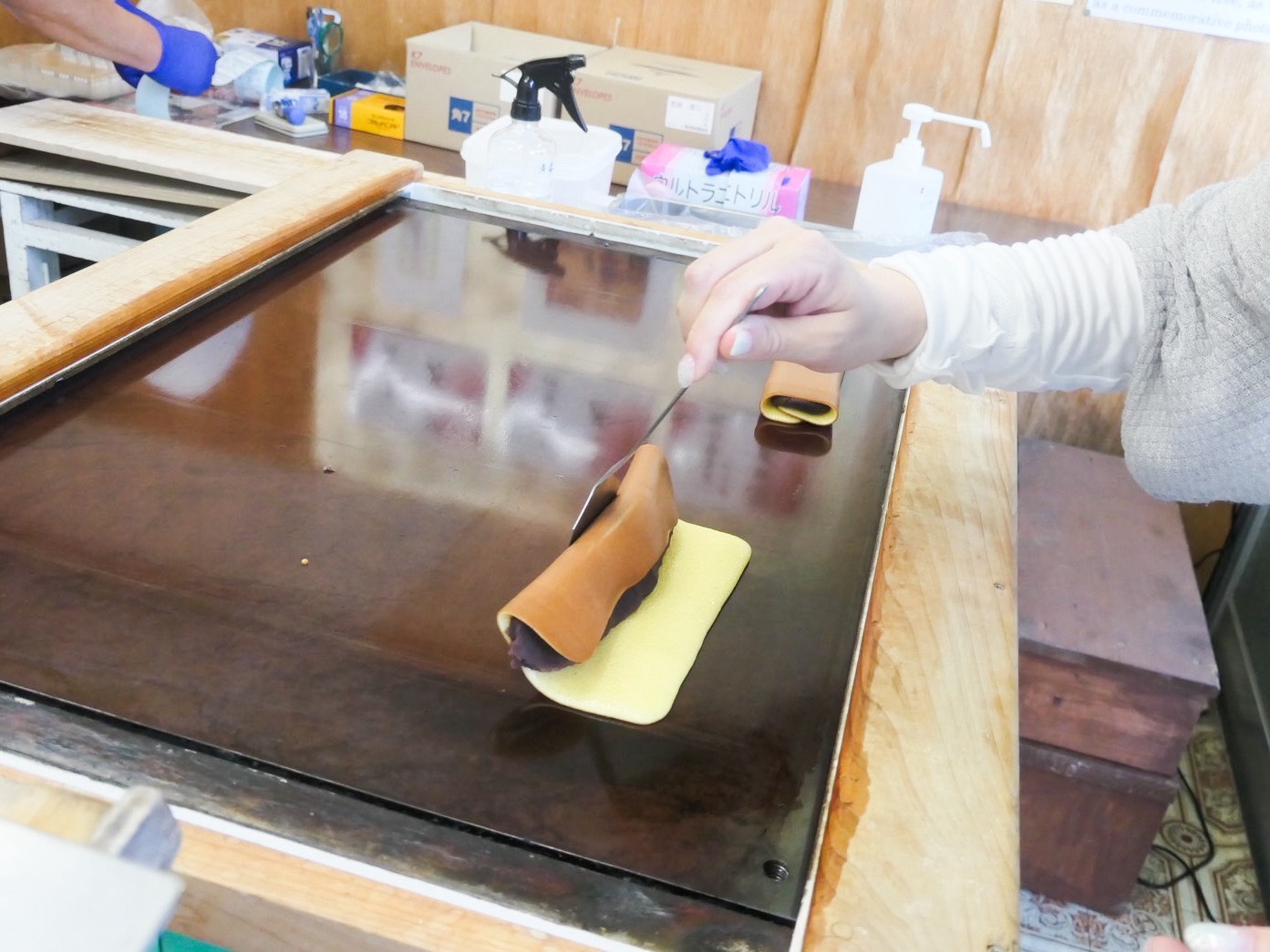 さっそく、源氏巻に挑戦! 初めてで不器用な私でも、お店の人が丁寧に教えてくれたので安心してつくることができました。