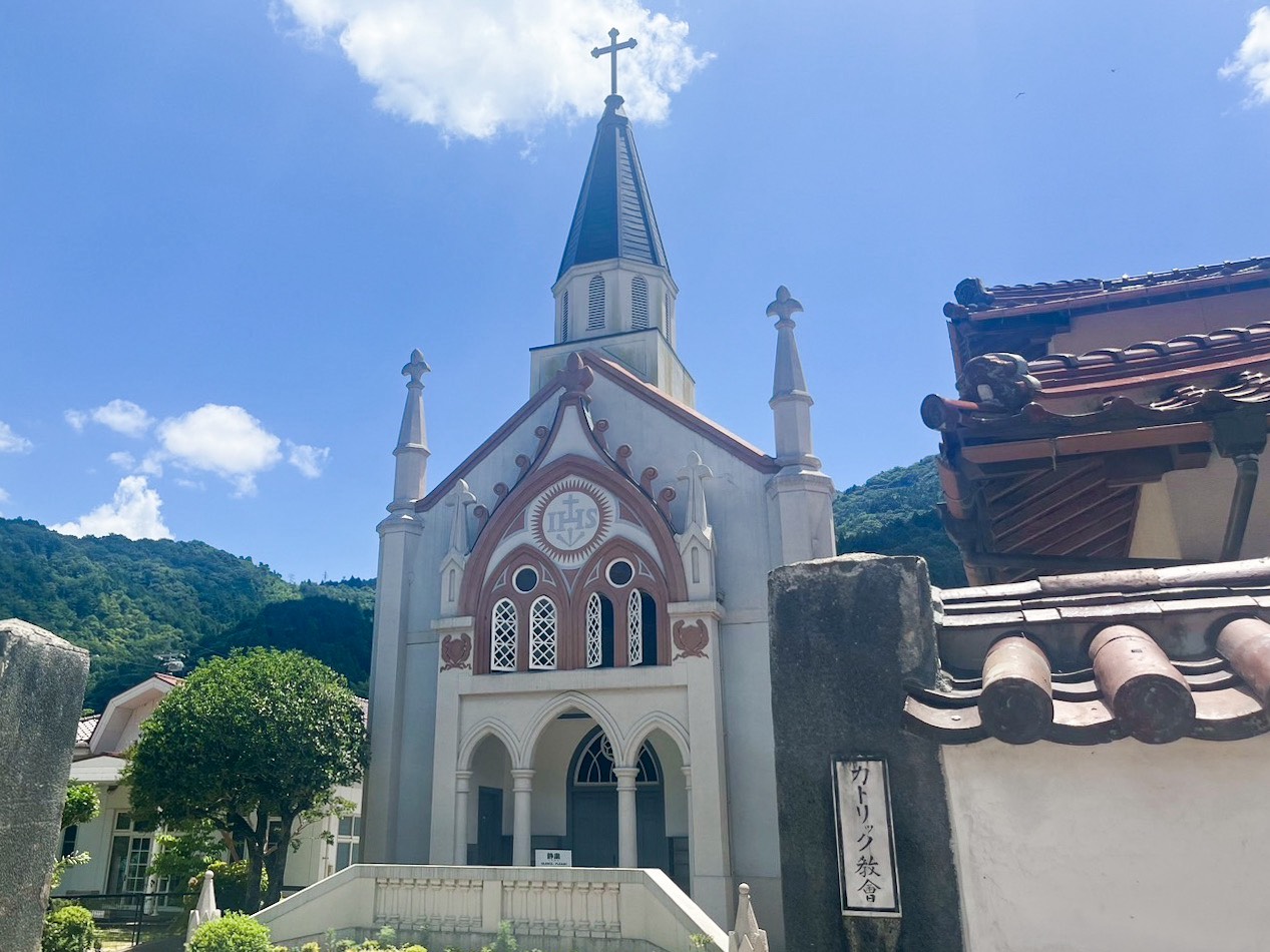 まずは島根県の最西端、山に囲まれた盆地に位置する、津和野町にやって来ました。「山陰の小京都」と名高いこの町はかつて、武家屋敷が並ぶ“武士の町”であったそう。白壁の町並みと石畳の通りなど、江戸初期に形成された城下町の名残を随所に感じられる場所です。さらに隠れキリシタン縁の地でもあるので教会や聖堂があり、和洋の異文化が融合した景観も特徴的。