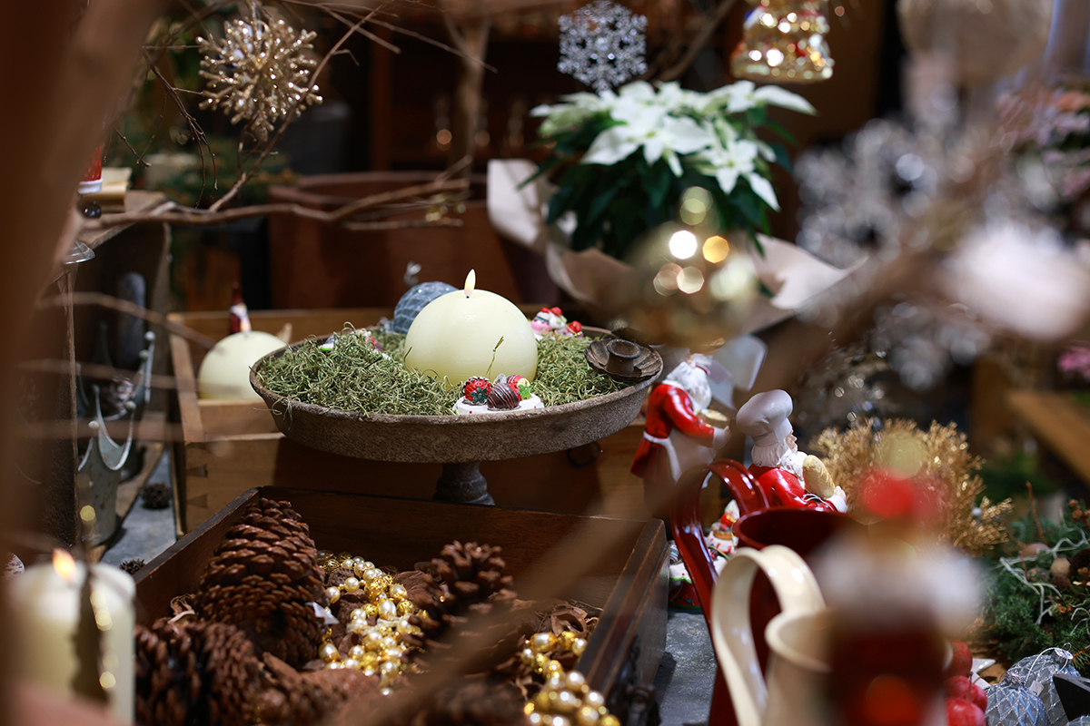 ツリーのオーナメントやキャンドルなども豊富で、様々なコーナーに雑貨が植物と共に品よく飾られていて、どこもかしこも素敵。ずっと眺めていたくなりました。