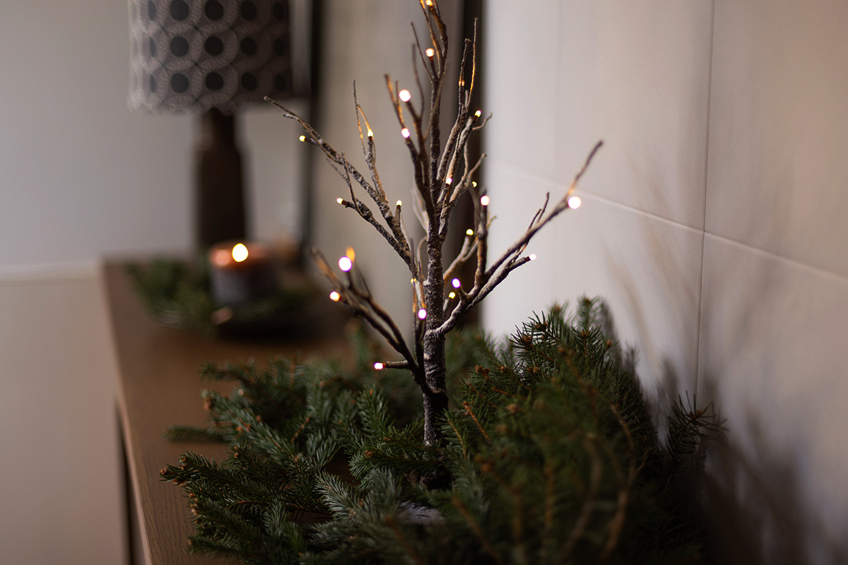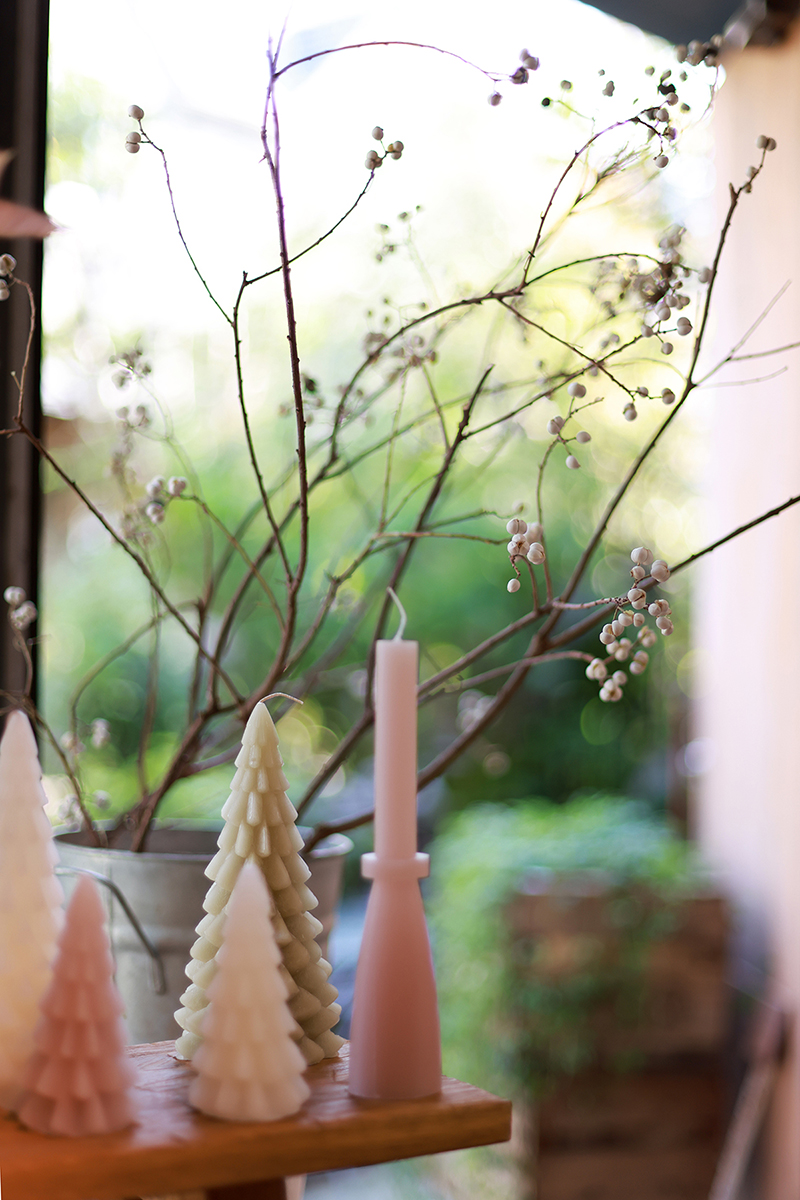 ここに越してきた年に見つけたブランチツリーをメインにして、玄関先を中心に飾り付け。毎年ほとんど同じ飾り方なのですが、このツリーの佇まいが好きで、気負わずに飾れて片付けも簡単なので気に入っています。