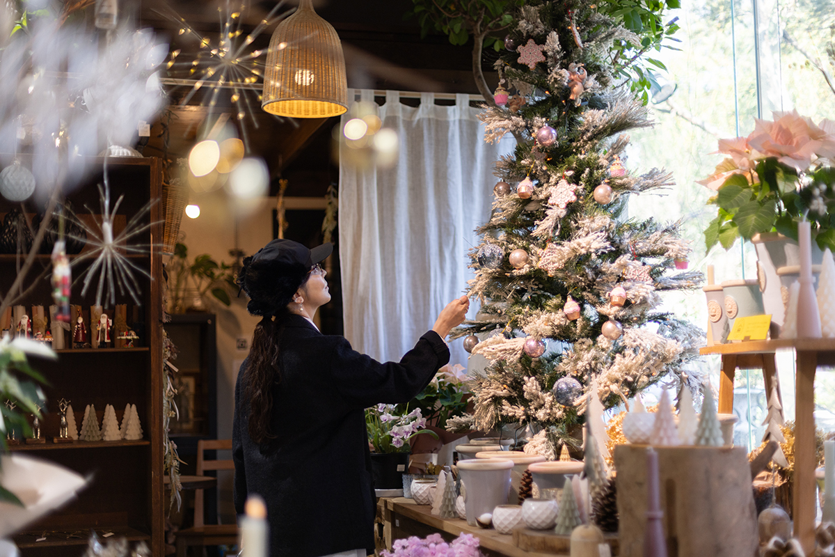 来月はクリスマス。お部屋に飾る枝物を探しにお店を訪れた内田さんが見つけた素敵なクリスマス雑貨たちや、今年のしつらえを見せていただきました。