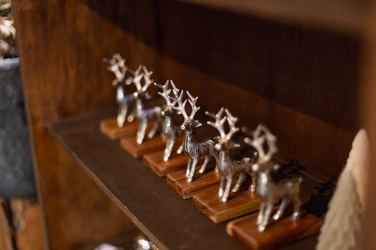 大人らしいシックな雰囲気のサンタクロースや、シルバーのトナカイも。気に入ったものを一つだけ選んで飾るのも特別感があっていいですね。