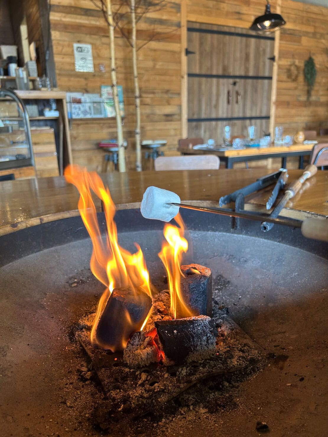焼きマシュマロをお願いすると、店員さんが火入れをしてくれました。