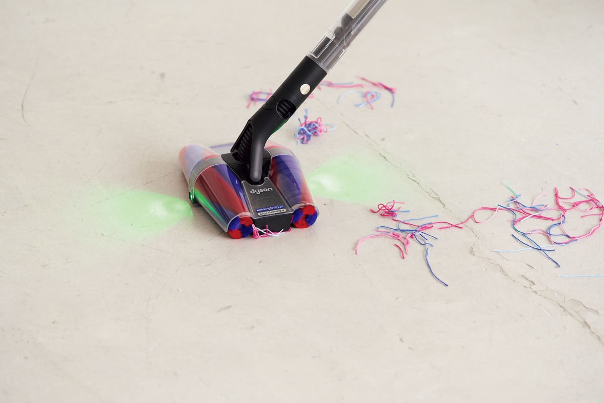 「ダイソン売り上げNo.1というこのクリーナー、気になっていました。すごく軽いしスリム! 使いたい方向にヘッドがクルッと回るし自走してくれるので、とにかく掃除がラクですね」小笹
