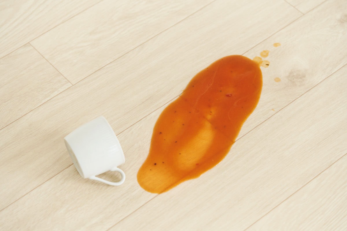 こぼしたトマトスープが跡形もなくキレイに
