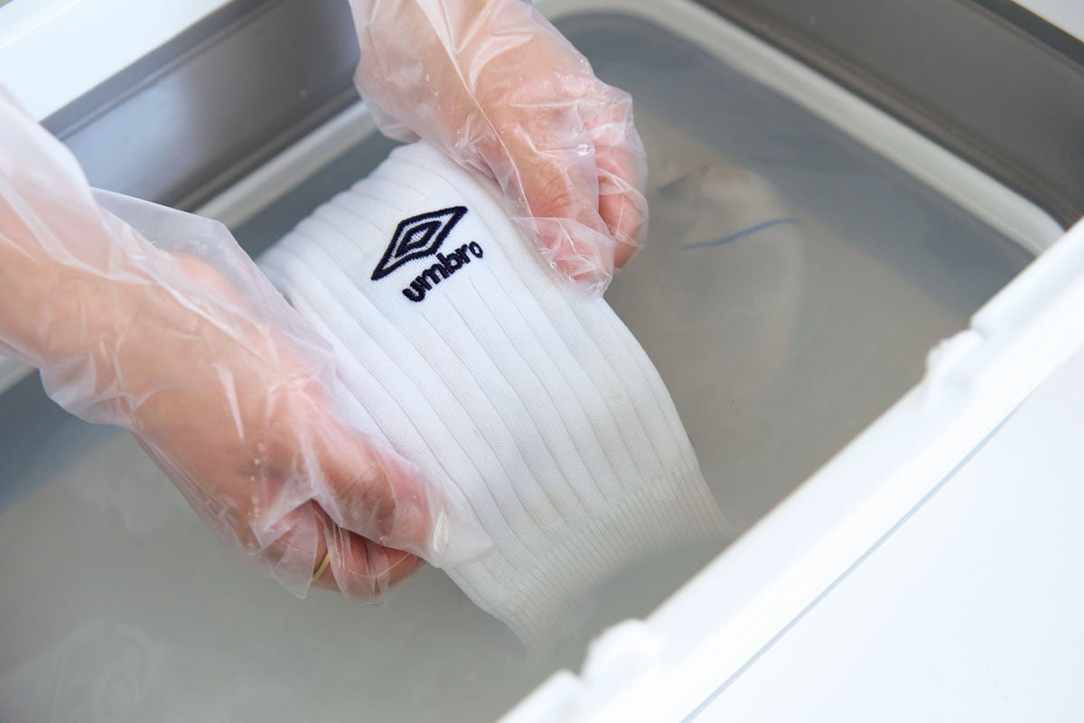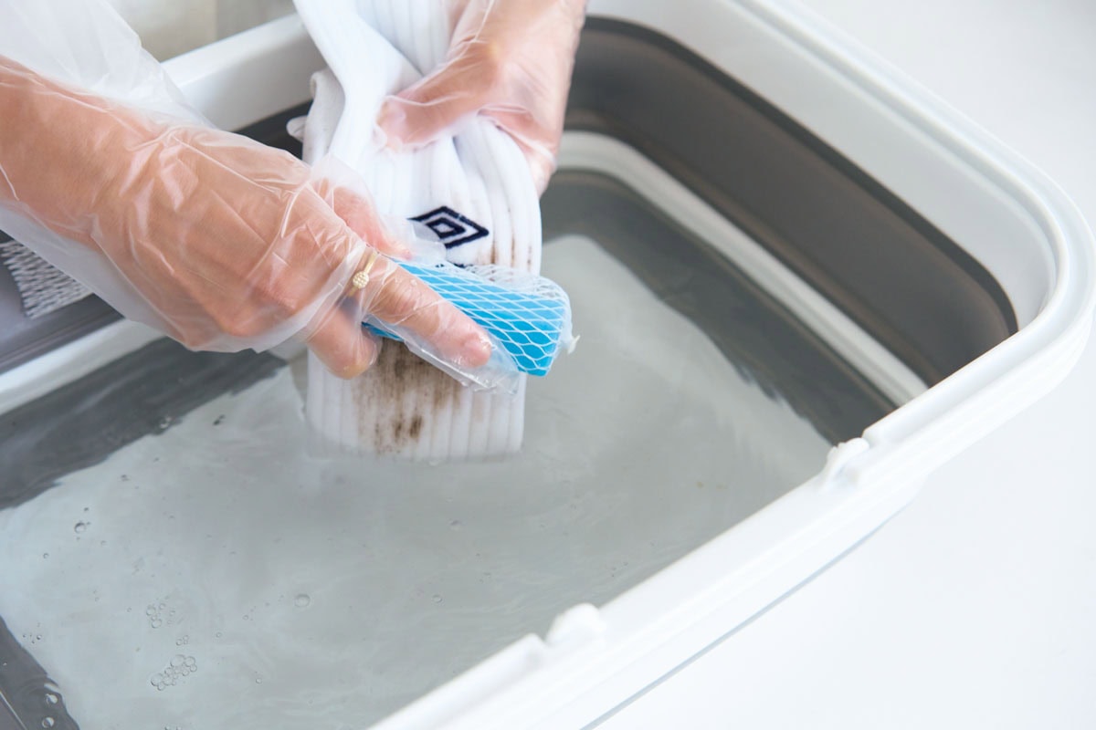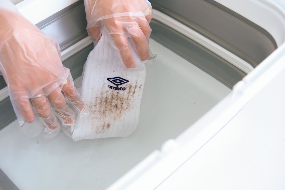 子どもがサッカーでつけてきた頑固な靴下の泥汚れ……