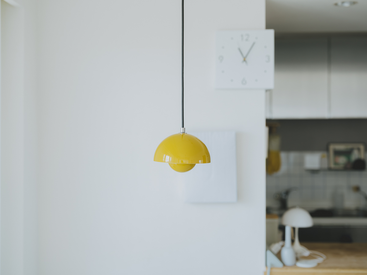 照明には、お気に入りのブランド「&tradition」からセレクト。控えめなデザインながら、マスタードが空間に心地よいアクセントを与えています。