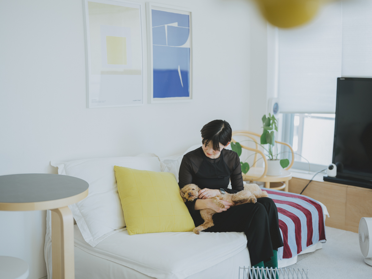 無機質な雰囲気をベースに、色や質感を少しずつ重ねながら、心地よさを育ててきたkeiさんの住まい。暮らしや気分にあわせて楽しく、心地よく整えていきたいという姿勢が空間全体にやさしく息づいています。