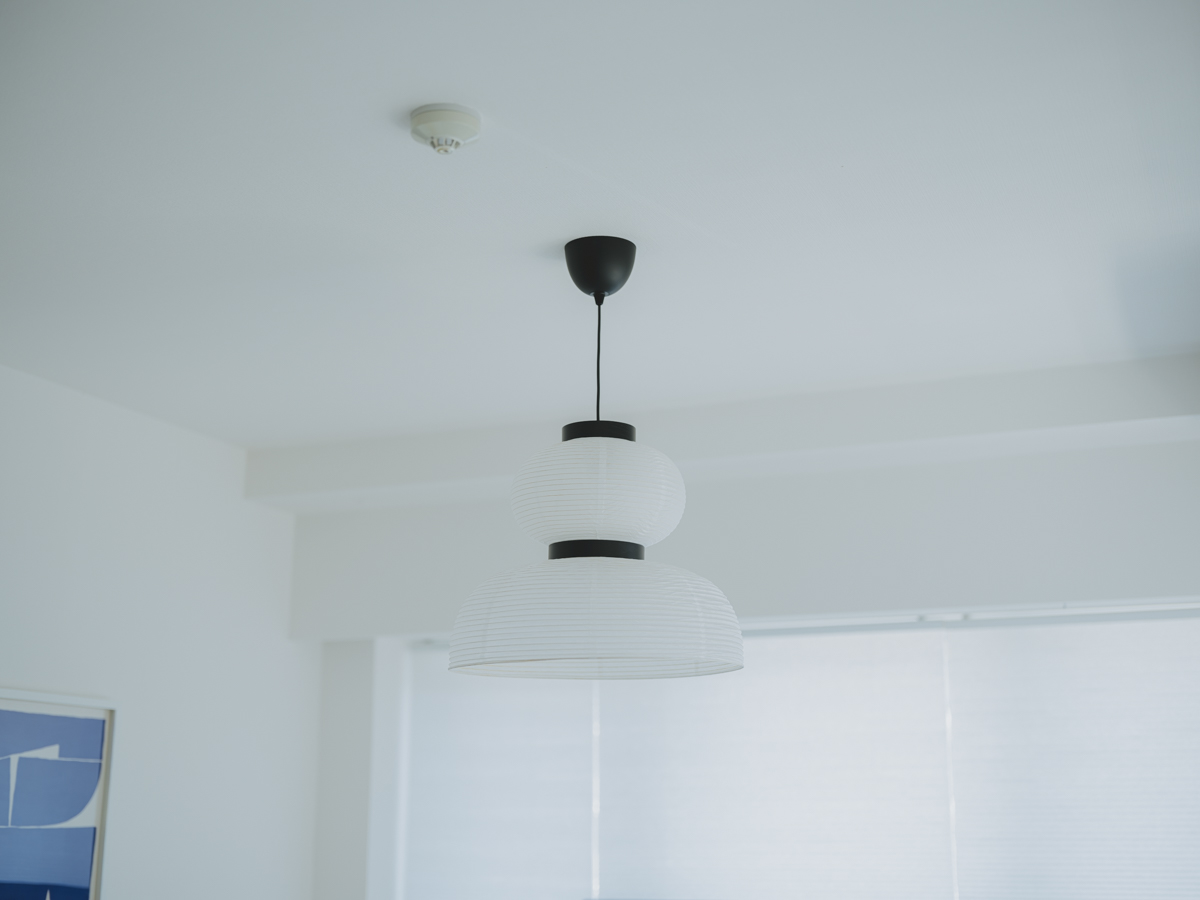照明には、提灯を思わせるアジア調のフォルムに、モダンなデザインを掛け合わせた「&tradition」の一灯。ふんわりとしたシルエットが、空間にやさしく溶け込みます。