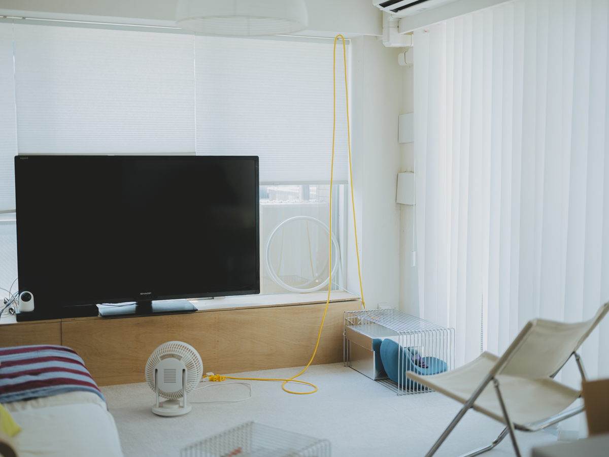 また、フォーカルポイントとなる場所に黄色の延長コードを縦に這わせ、空間を引き締めているそう。