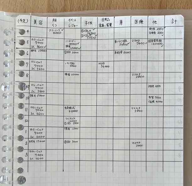 「年度末の3月に1年間分の家計を振り返り、次年度にかかりそうな費用を書き出しています。毎月かかる合計金額も書いておくと、支出が増えても焦ることがなくなりました」
