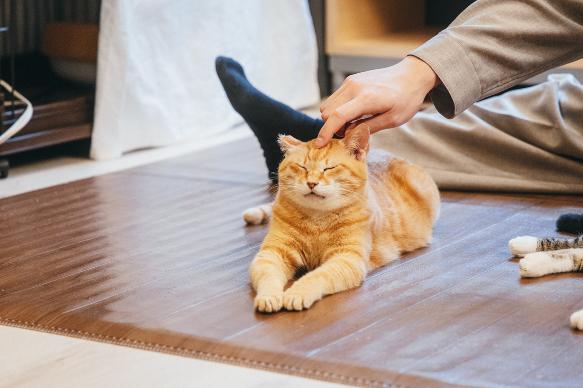 この日訪れた「ネコリパブリック東京池袋店」にいるのは、まだ1歳未満の新入り猫・リリちゃん&ララちゃんから、11歳のディストくんまで、約10匹の猫たち。真っ先に近づいてきたのは穏やかで人なつっこい茶トラのディストくんです。