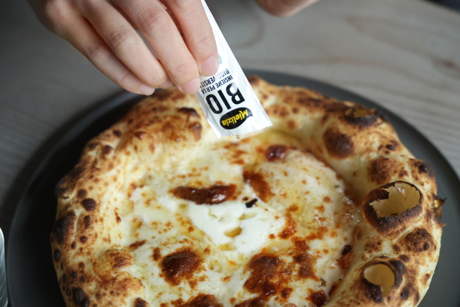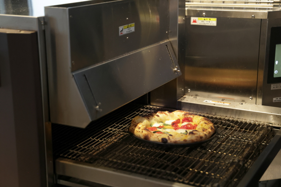 高温のピザ窯で最短120秒という、超短時間で焼き上がるピザ