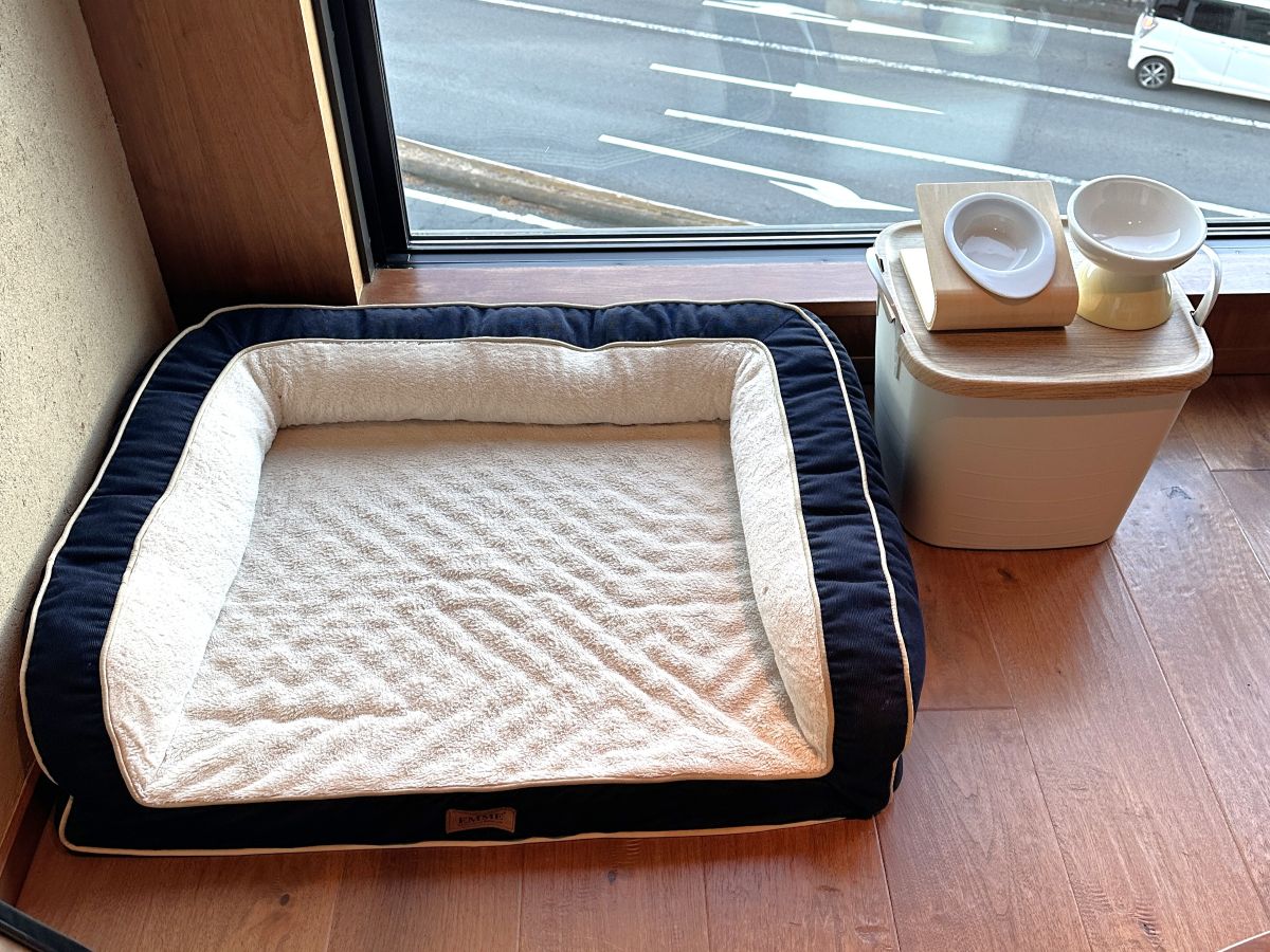 ペットベッドのほか、ワンコ用の食器やトイレシート、うんち袋、ウェットティッシュなど、必要なものはひととおり揃っているのがありがたい。ただしワンコ用の食事は用意がないので、持参が必要です。