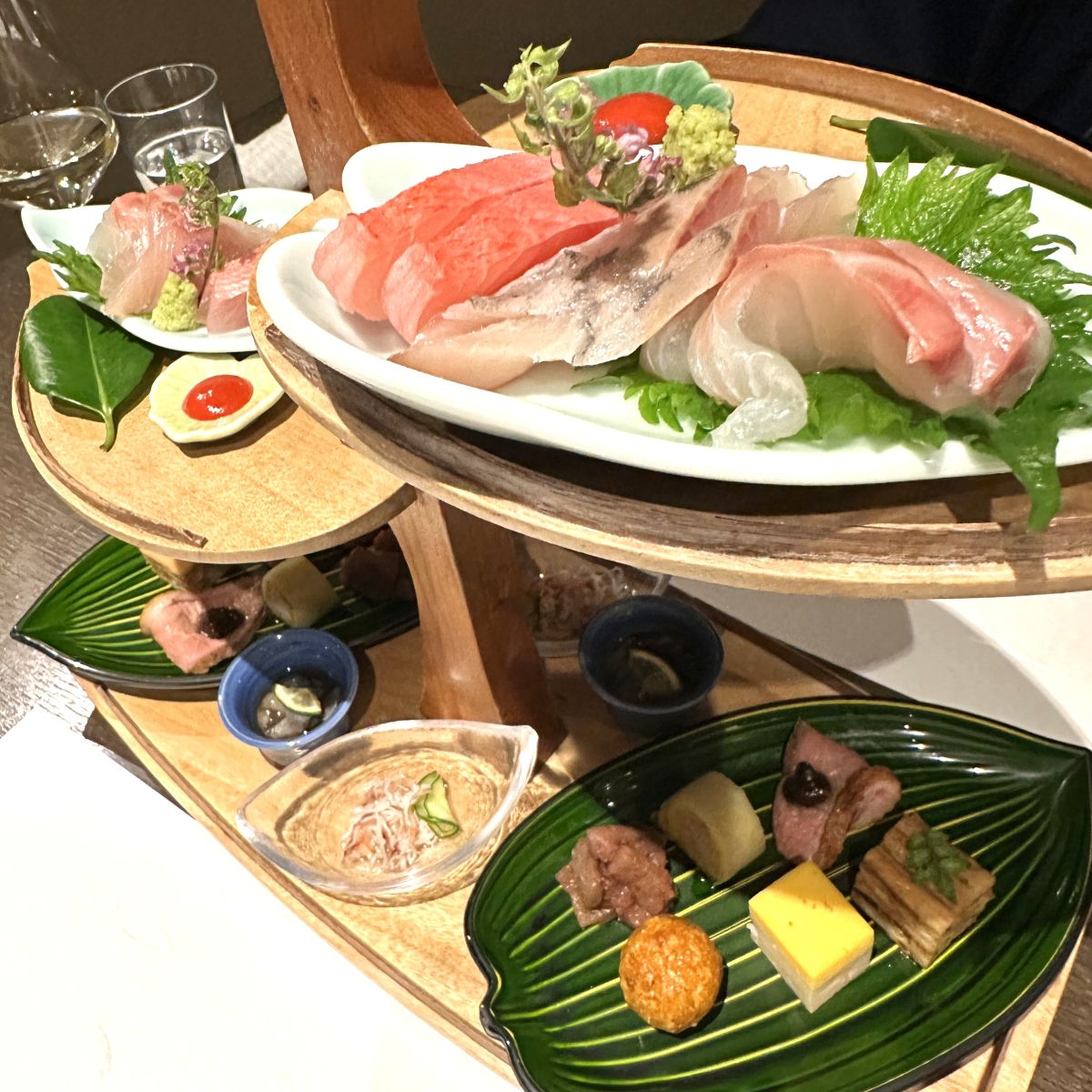 食事は、伊東の新鮮な魚介に、三浦按針の出身である英国の要素を加えた和会席。夕食では、八寸やお造りがハイティーツリーをイメージした器に盛りつけられ、見た目も華やか。メインの台の物には、金目鯛や海老、あさりなどの新鮮な魚介をじっくりと炊き込んだ「金目鯛のブイヤベース」が登場します。