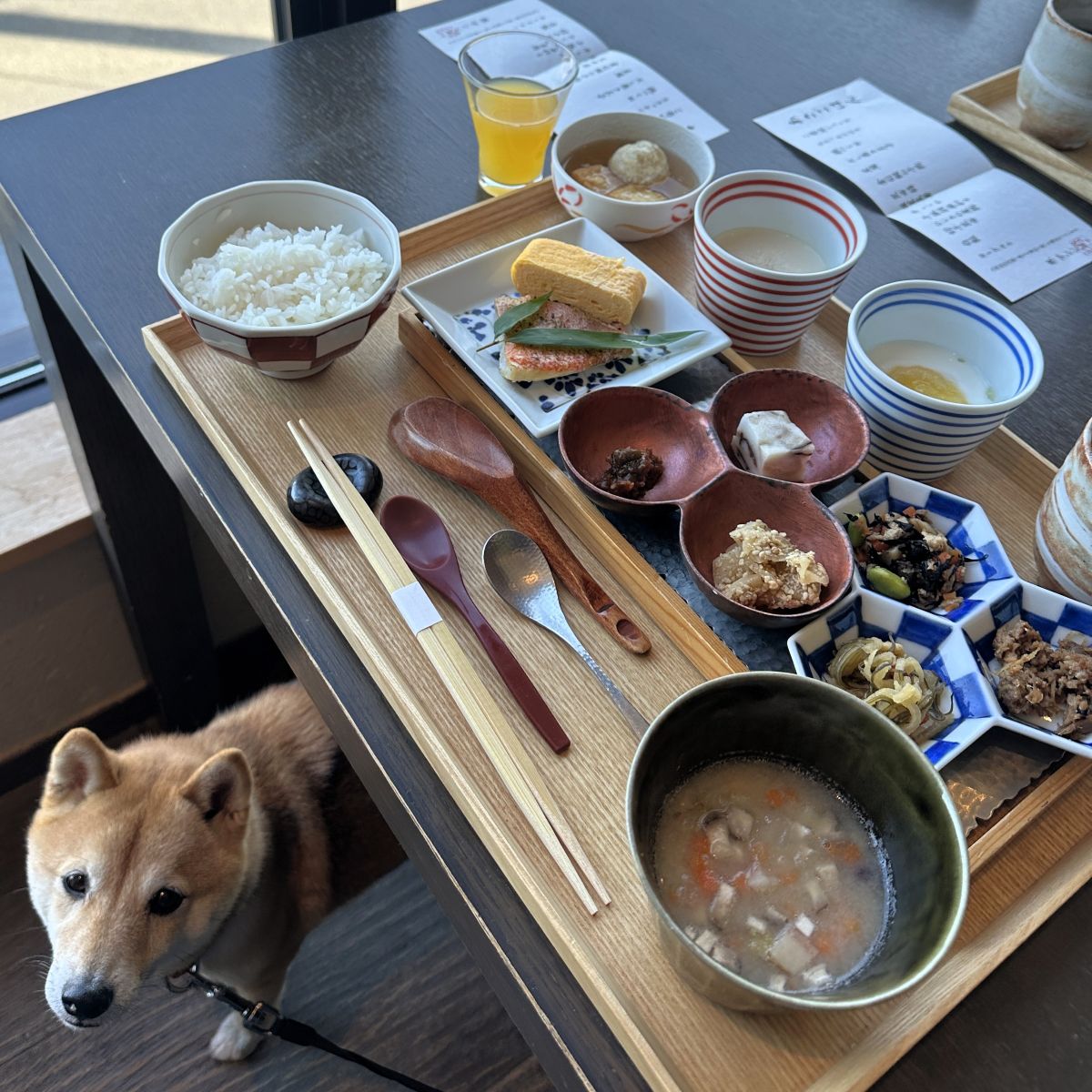 もちろん食事処にも、ワンコを連れて行ってOK。半個室になっているので、周りを気にすることなく、ゆっくりと食事を楽しめます。