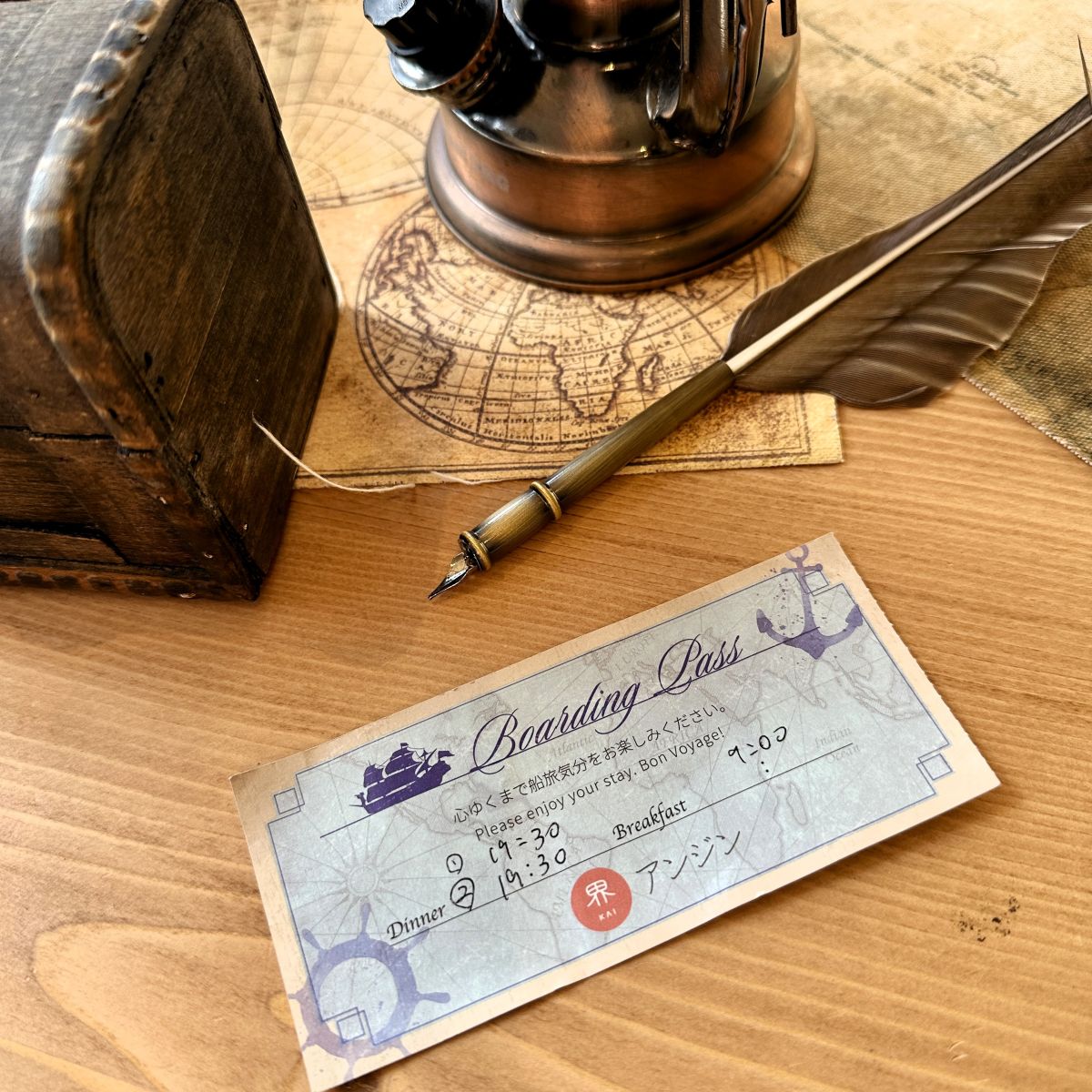 チェックイン時にはチケットを手渡してもらえるのですが、これは「界 アンジン」を一隻の大きな船に例え、乗船チケットをイメージしているのだそう。これからの滞在がまるで船旅のように感じられ、ワクワク感が高まります!