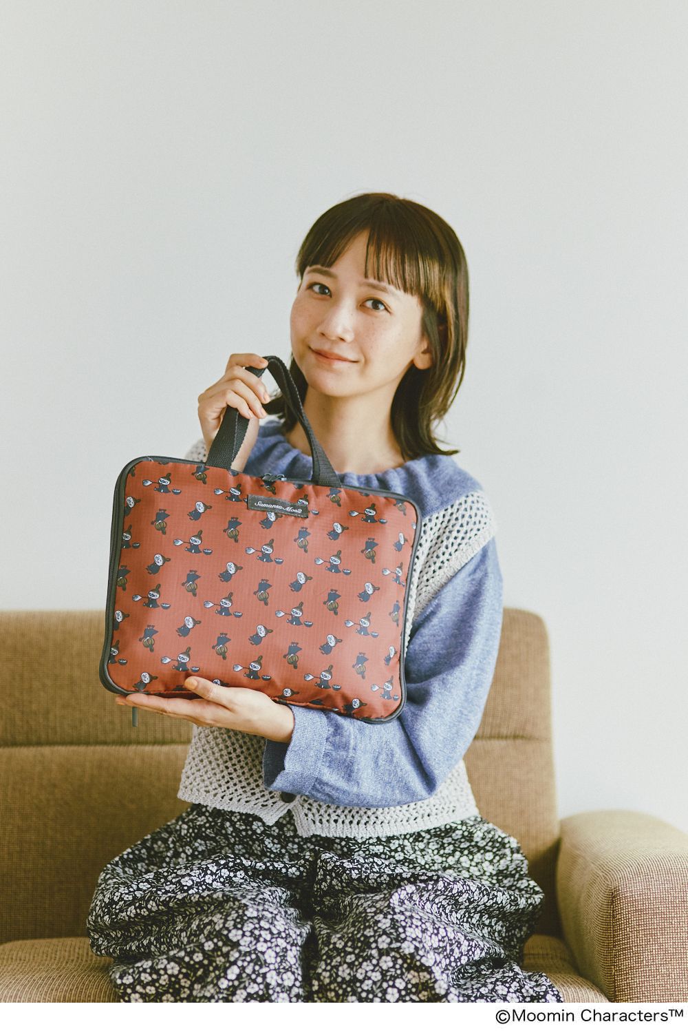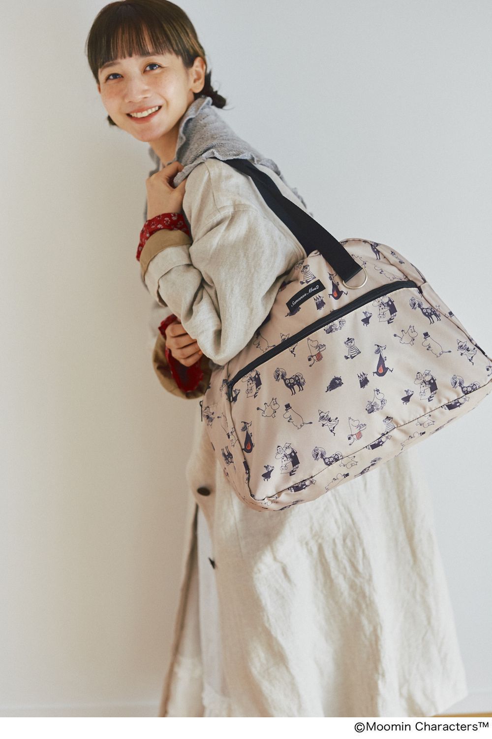 服で色遊びを楽しむのが好きなので、どんな配色の洋服にも似合うピンクベージュのバッグは重宝しますね。ムーミン谷の仲間たちが勢揃いしているのもかわいい!
