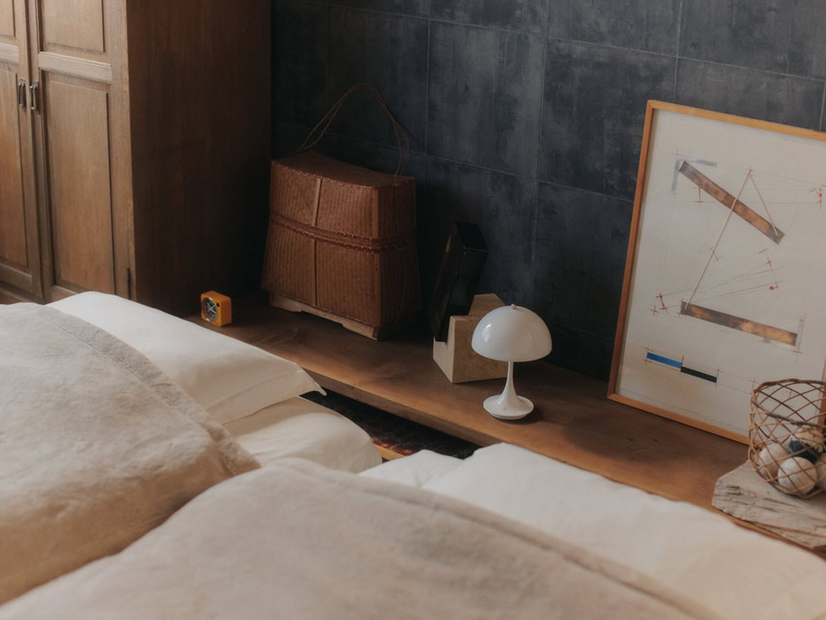 「強い光はあまり好みではなくて。フロアライトで光をやわらかく広げたり、小さな灯りをいくつか重ねたりしながら、ちょうどいい明るさに整えています」