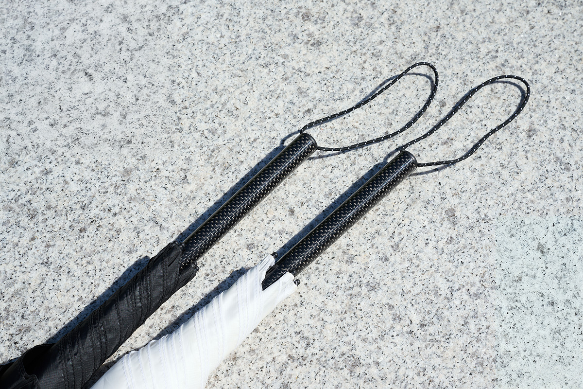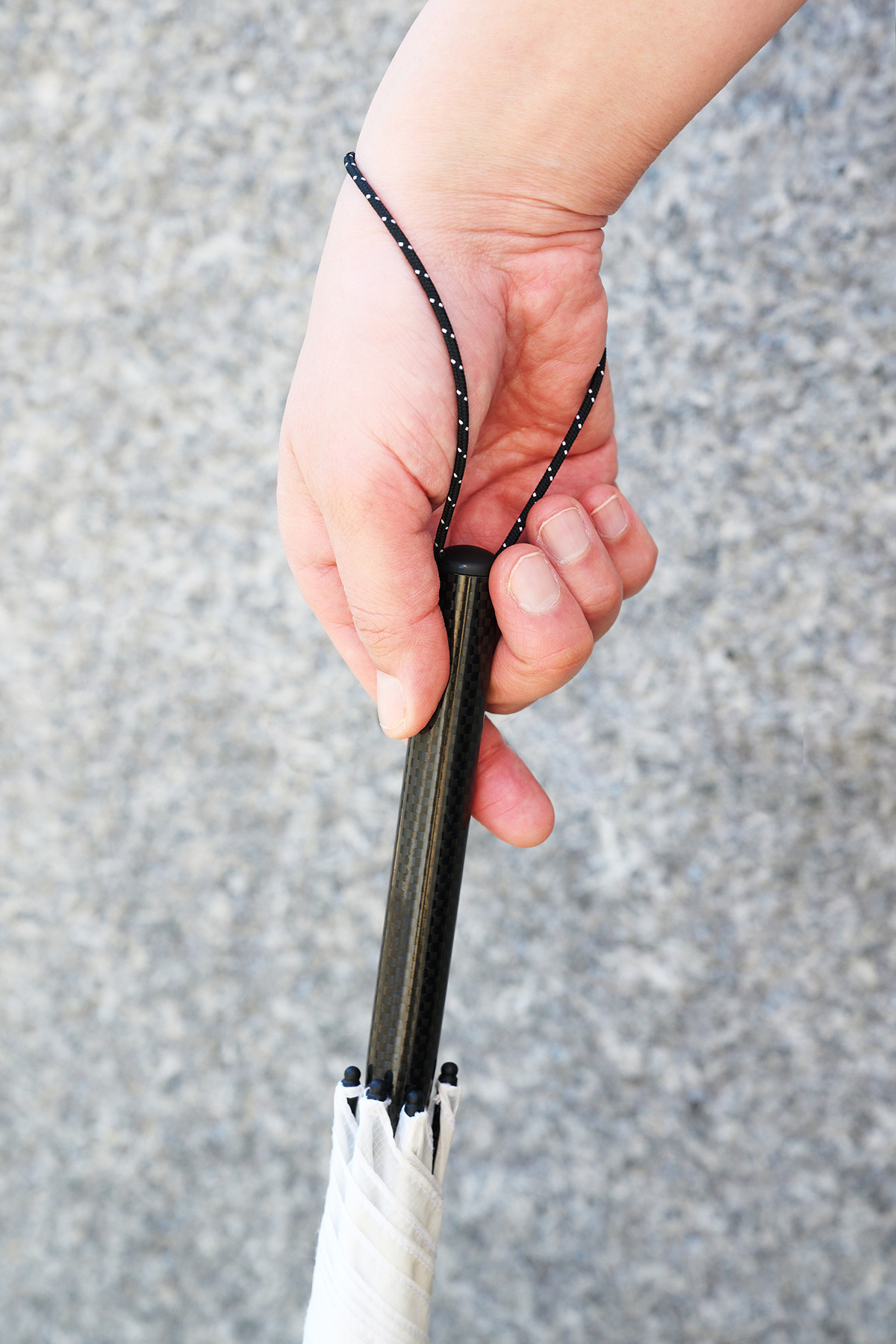 傘骨すべてにカーボン素材を使い、親骨にはカーボン繊維強化樹脂を採用した超軽量の長傘。重量わずか125gと、持った瞬間にわかる圧倒的な軽さです。