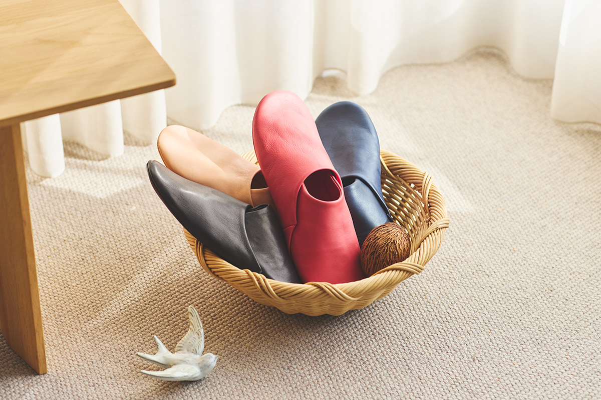 モロッコの山羊革で作られたバブーシュは、新生活のスタートにもぴったり。生成りや白、ブラウン、黒のベーシックカラーに加え、気分を明るくしてくれる赤などカラーバリエーションも豊富。メンズサイズも展開しています。
