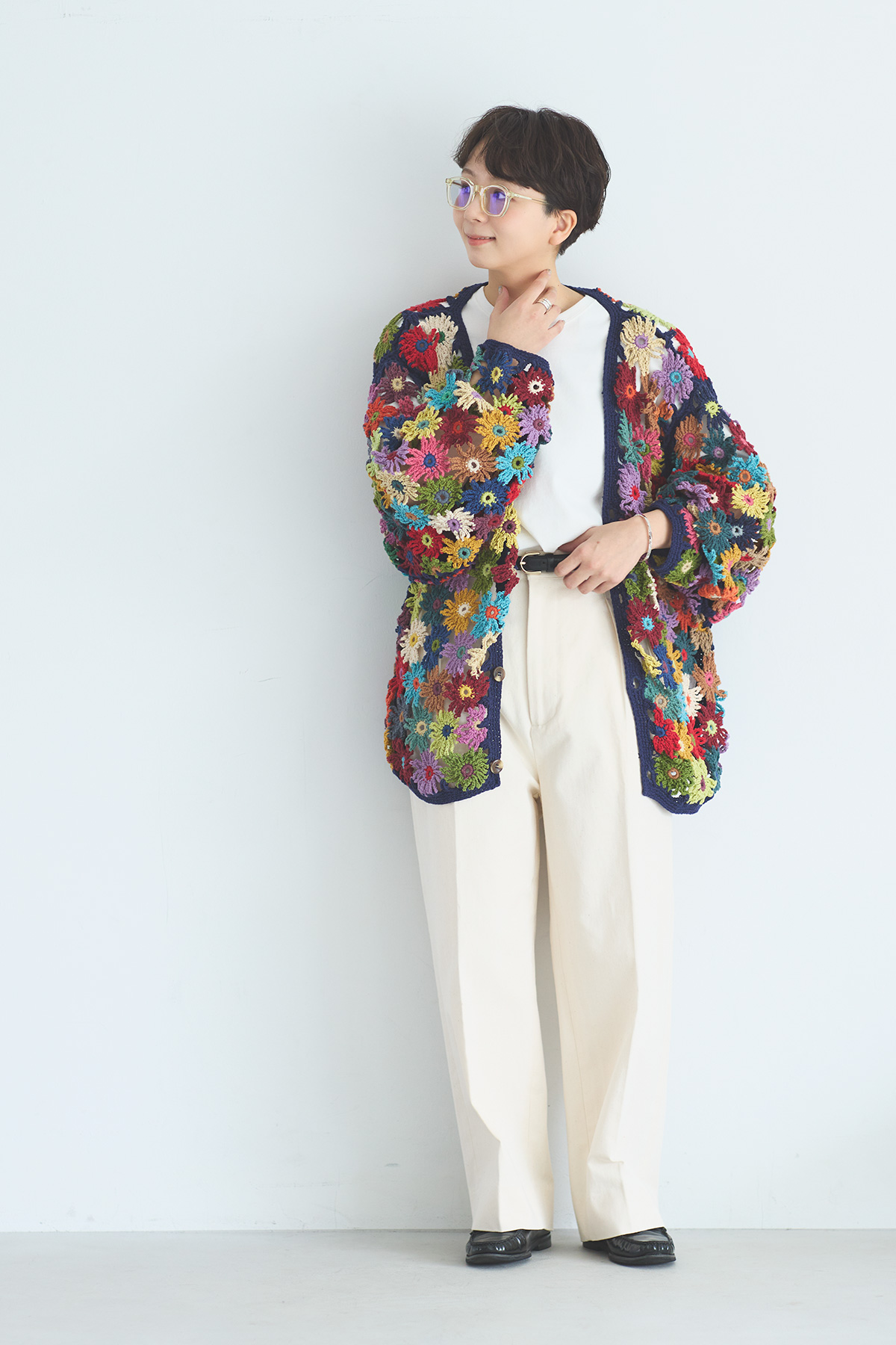 「現地の職人のことまで考えたものづくりの背景にも共感しています。こちらのカーディガンは、古着を彷彿とさせるようなデザインもお気に入りです」